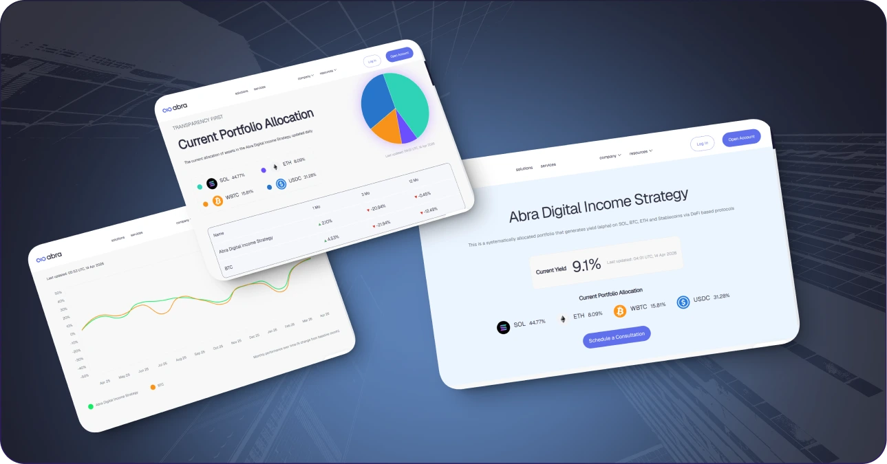 Abra needed to rebuild their institutional client portal to support high-net-worth individuals and family offices. The existing system couldn't handle the complexity of Separately Managed Accounts (SMAs), real-time collateral monitoring, and multi-asset yield strategies.